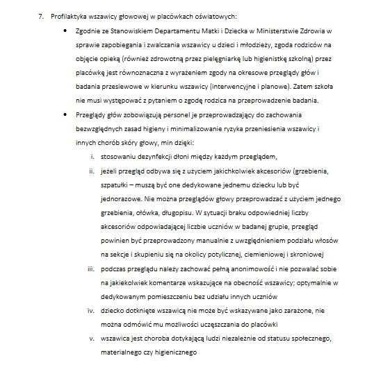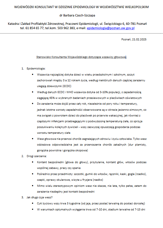 Stanowisko Konsultanta Wojewódzkiego w Dziedzinie Epidemiologii dotyczące wszawicy głowowej