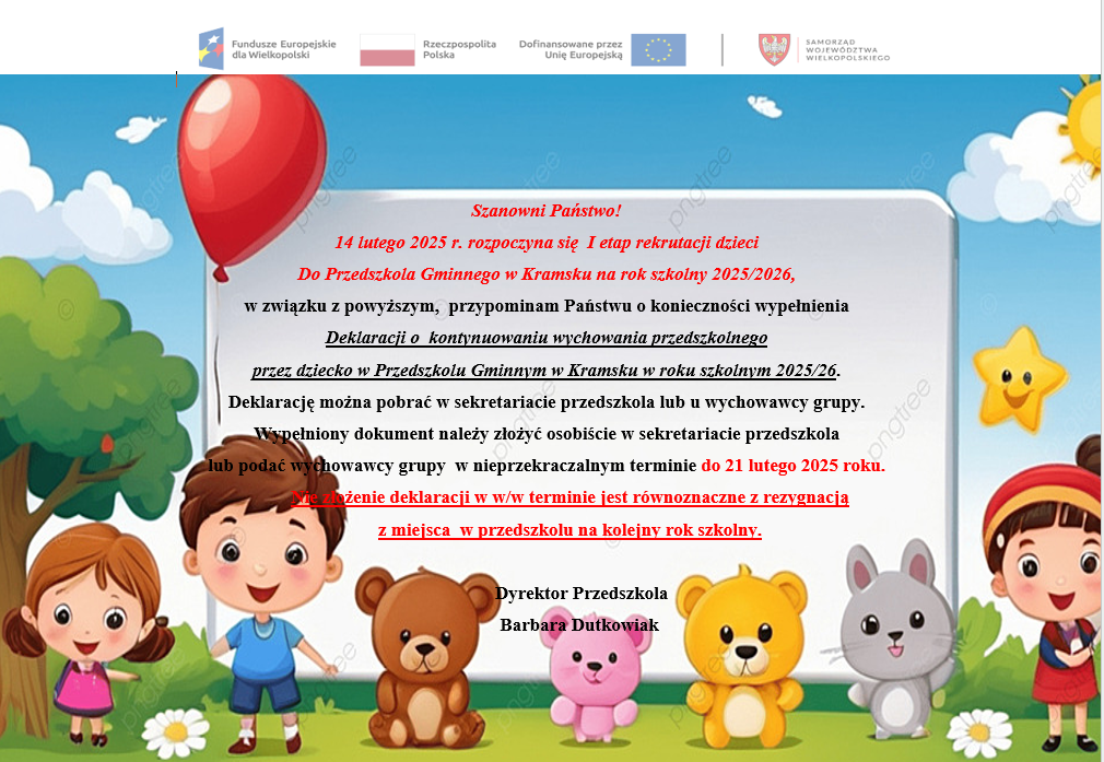 Stosowne oświadczenie należy przesłać drogą elektroniczną na pocztę przedszkola przedszkole.kramsk@gmail.com
