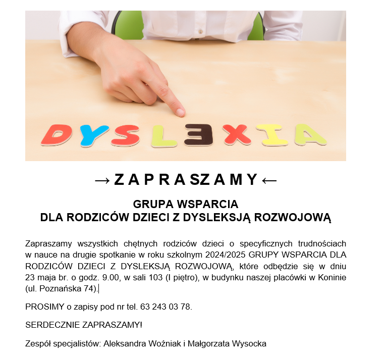 Zaproszenie na grupę wsparcia dla rodziców dzieci z dysleksją rozwojową