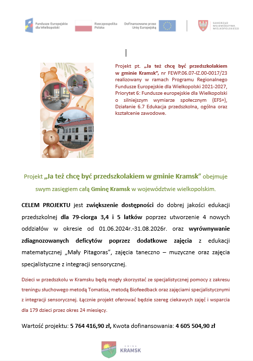 Z radością informujemy, iż Przedszkole Gminne w Kramsku przystąpiło do udziału