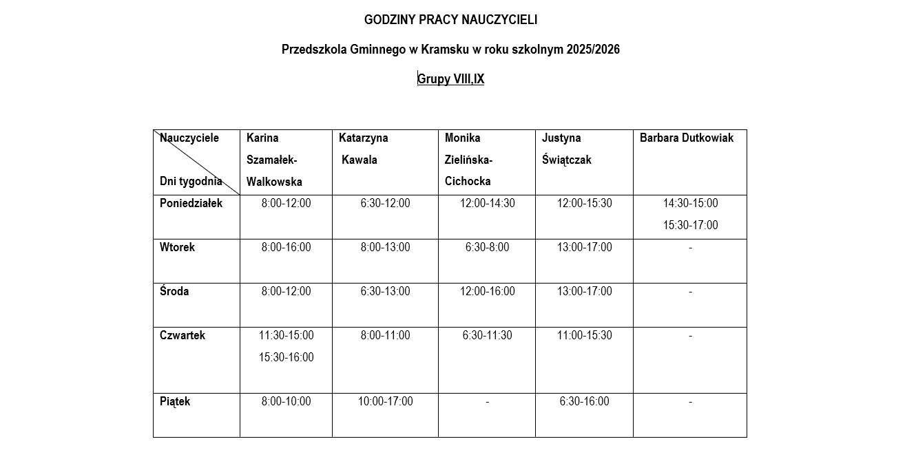 PLAN ZAJEĆ NAUCZYCIELI Gr. VIII