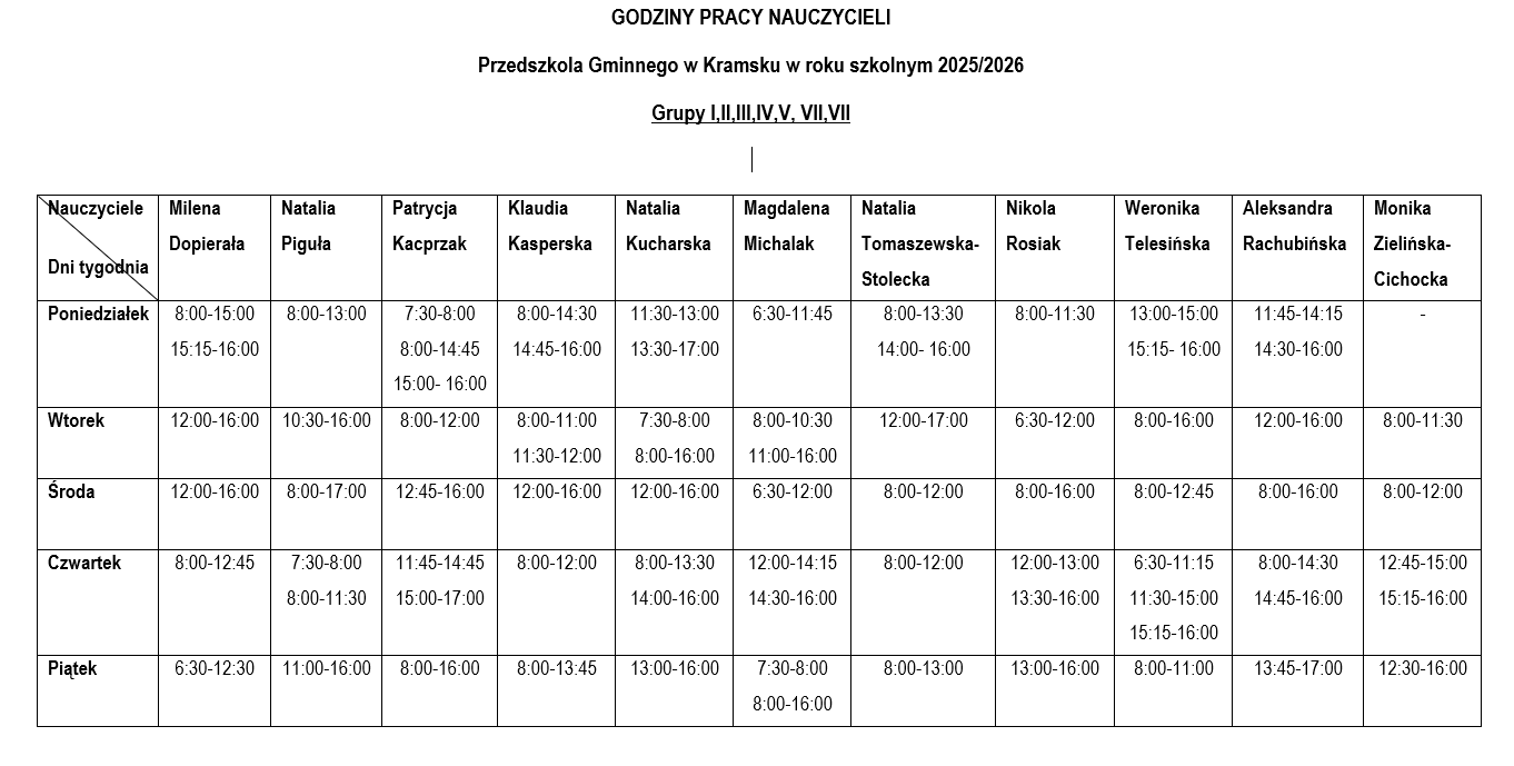 PLAN ZAJEĆ NAUCZYCIELI Gr. VII