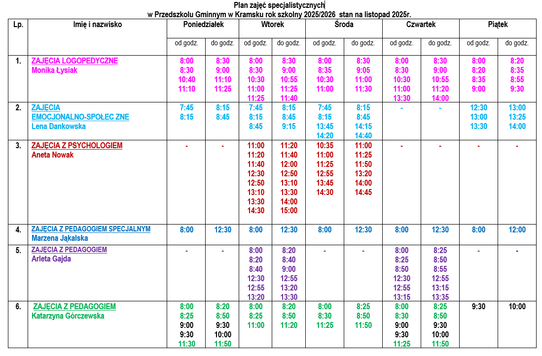Godziny pracy nauczycieli specjalistów