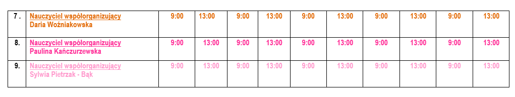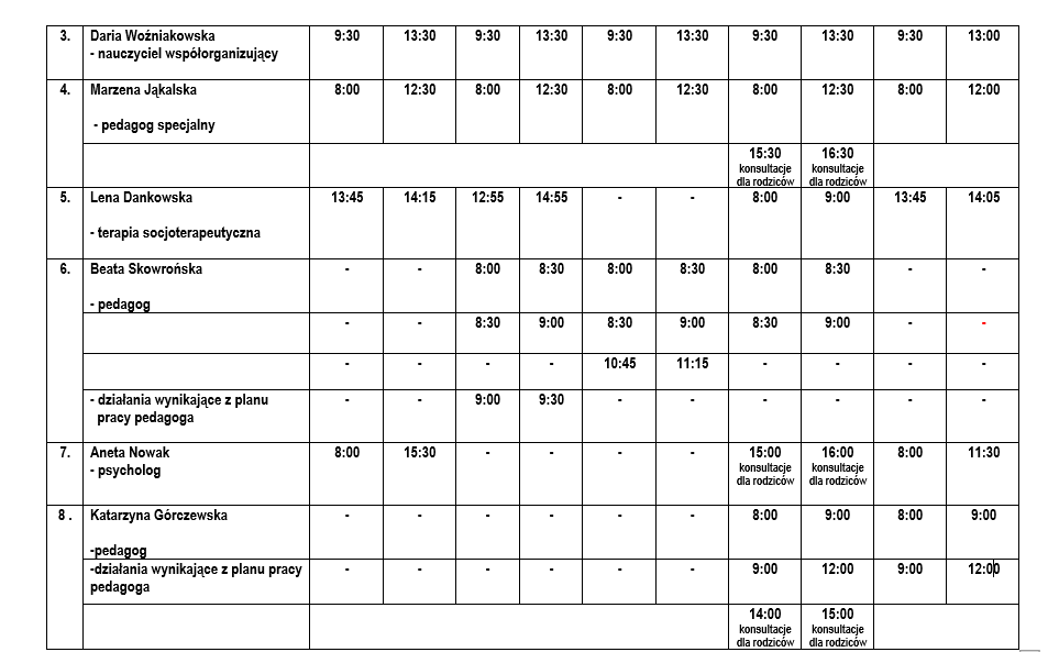 Godziny pracy nauczycieli i konsultacji pedagogicznych