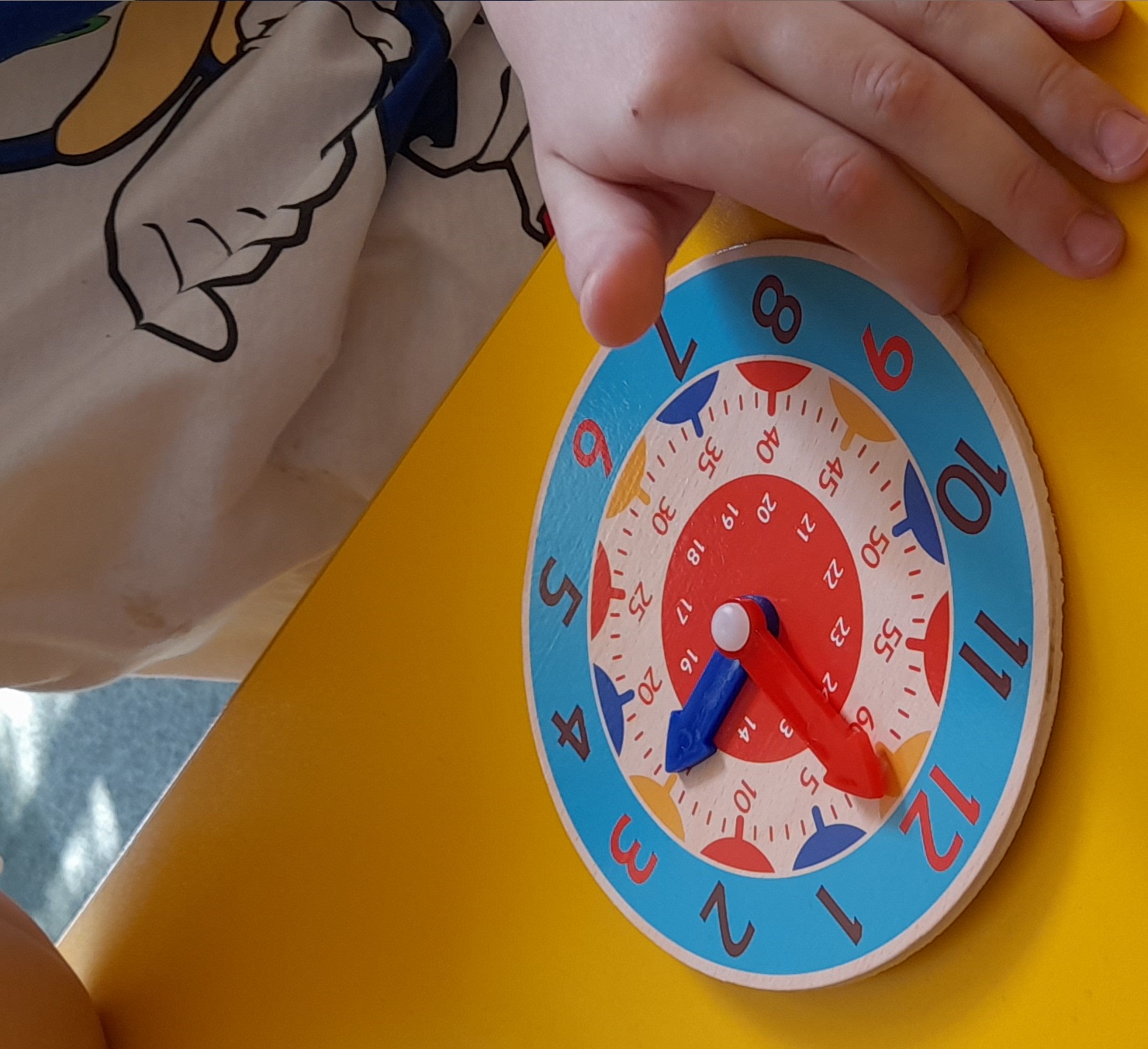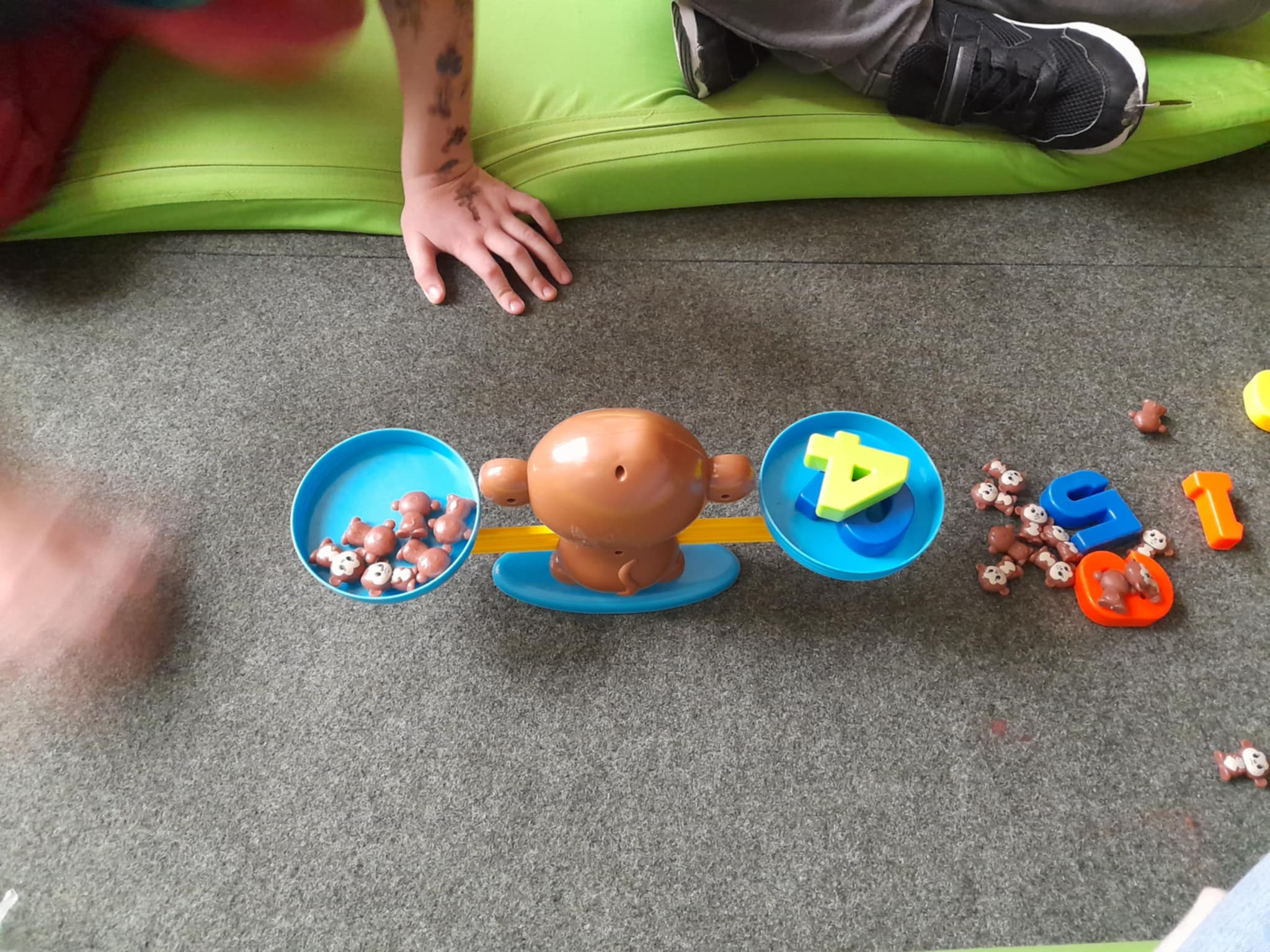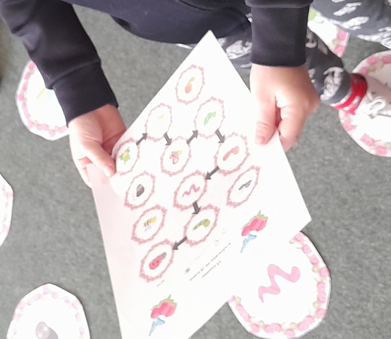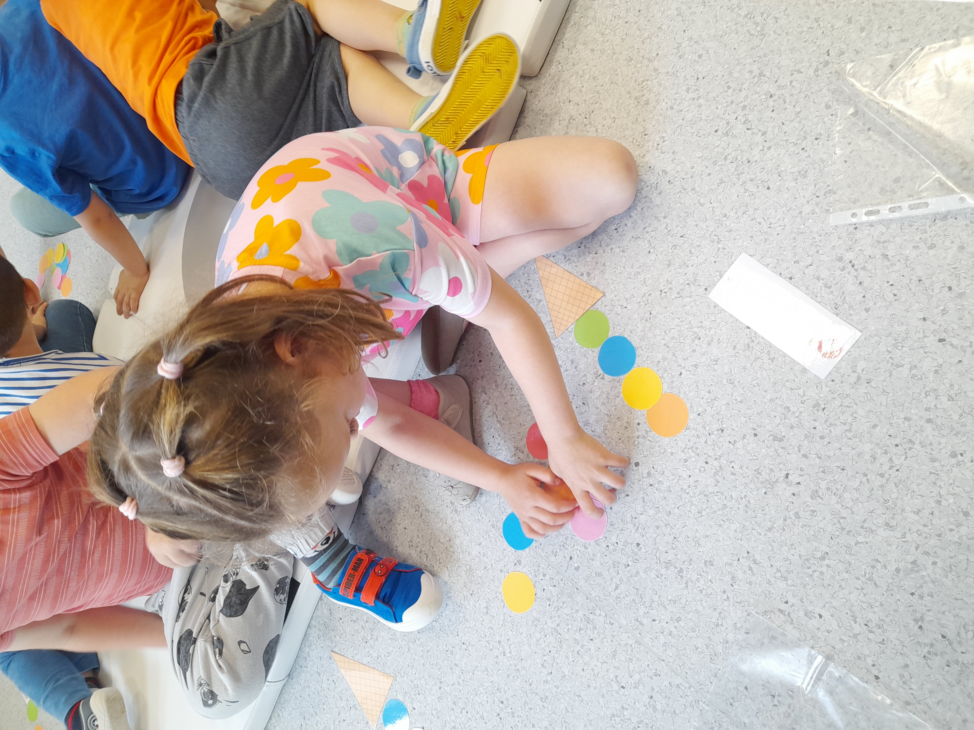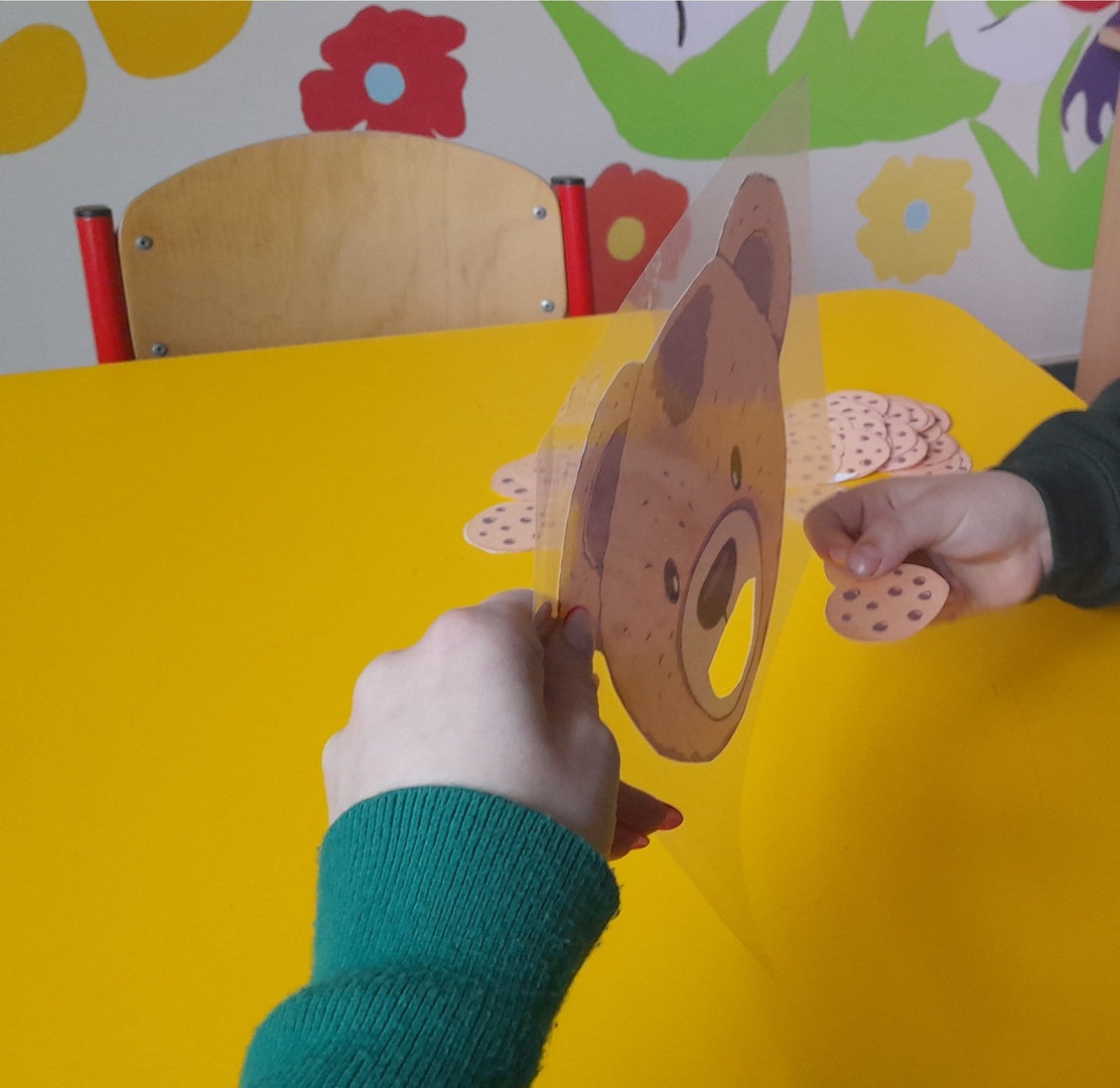 Każdy z graczy miał przed sobą wesołe buźki z różnymi cyferkami. Zadaniem przedszkolaków było obcinanie jednej cyferki nożyczkami, która została wylosowana przez kostkę do gry. Osoba, która obcięła nożyczkami wszystkie cyferki wygrała.