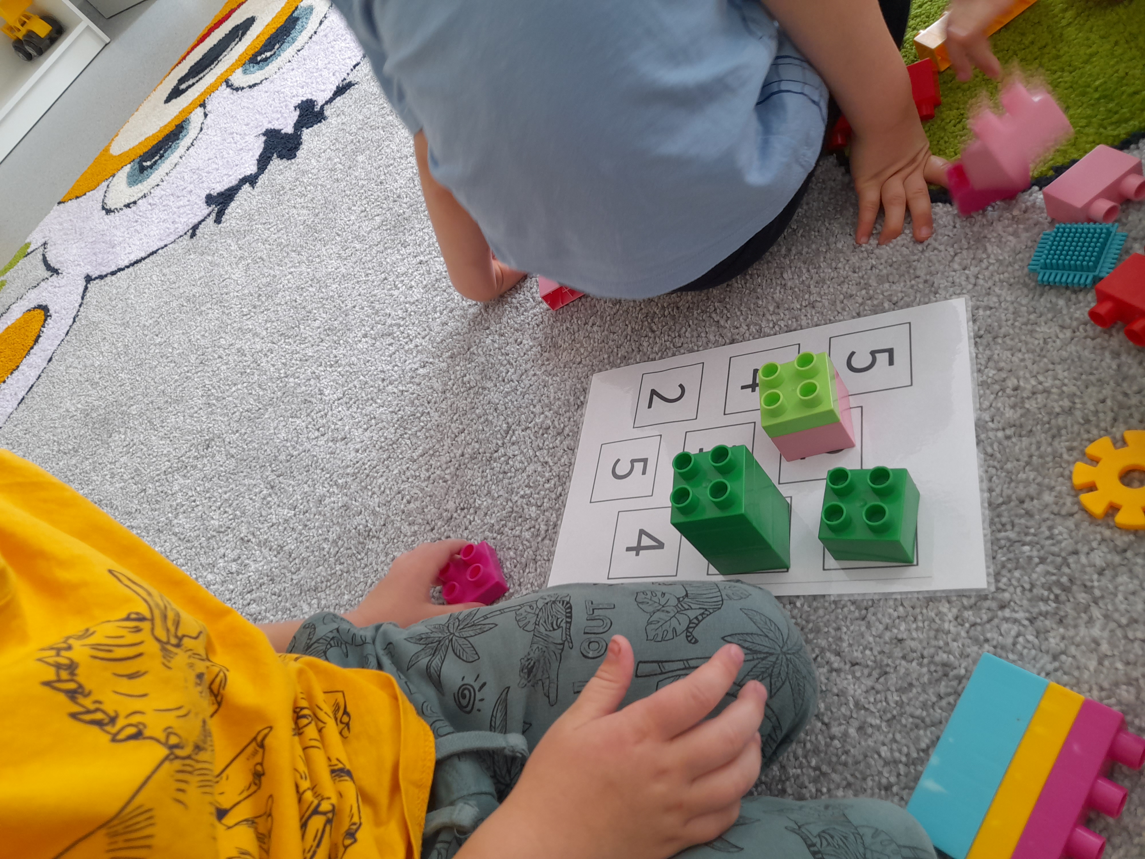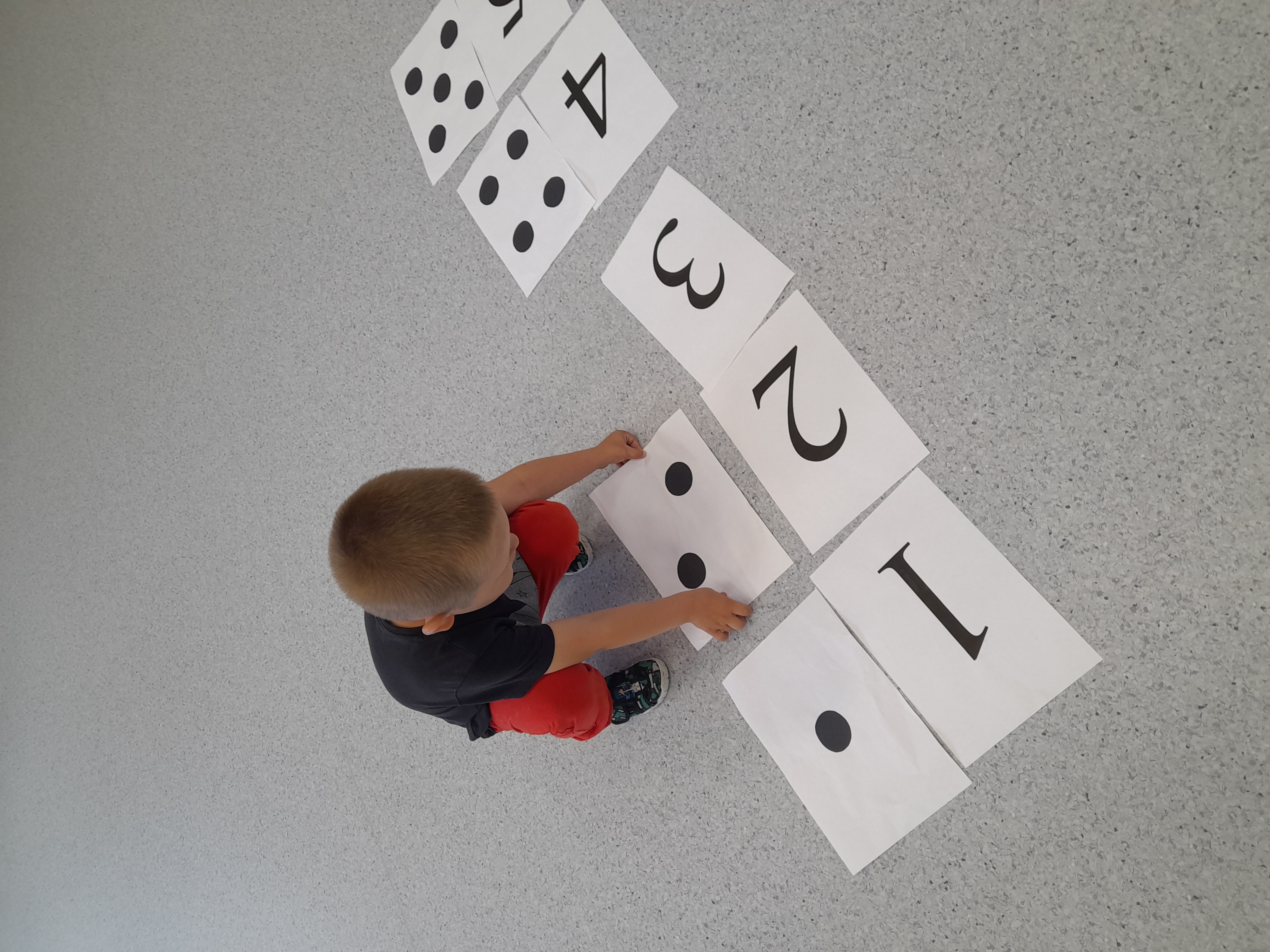 Zadaniem przedszkolaków w tym ćwiczeniu było dopasowanie kropek do odpowiedniej cyfry na planszy.
