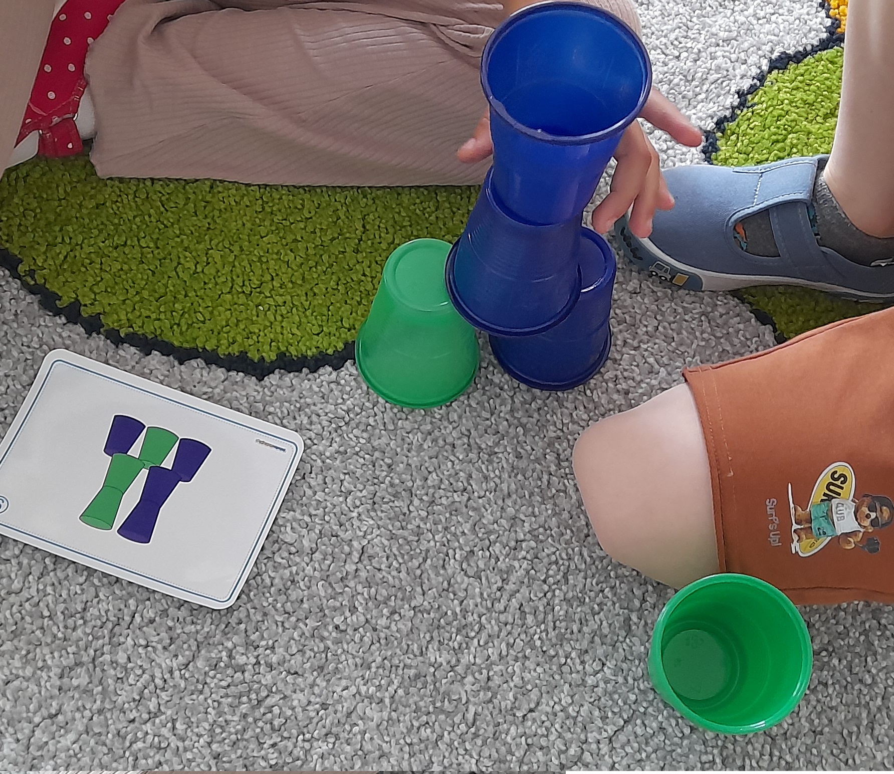 25 listopada grupa 5/6 latków budowała z klocków swoje kolorowe wieże. Zadaniem dzieci było zmierzenie wysokości swoich wieży za pomocą wstążki oraz segregacja od najniższej do najwyższej.