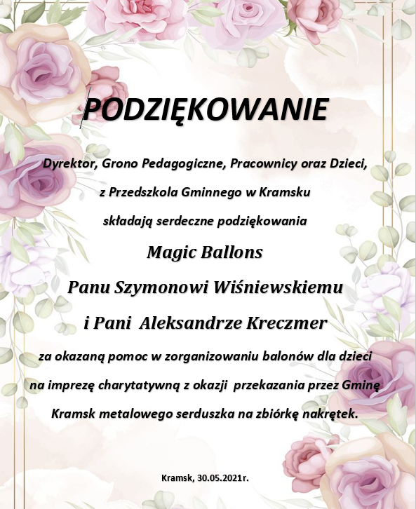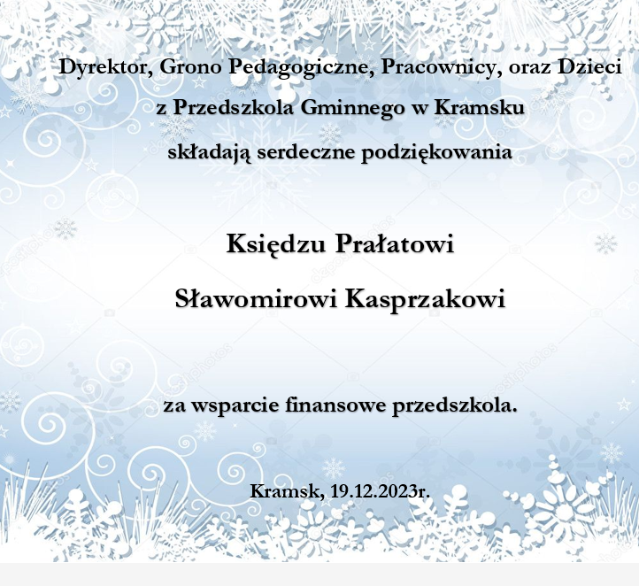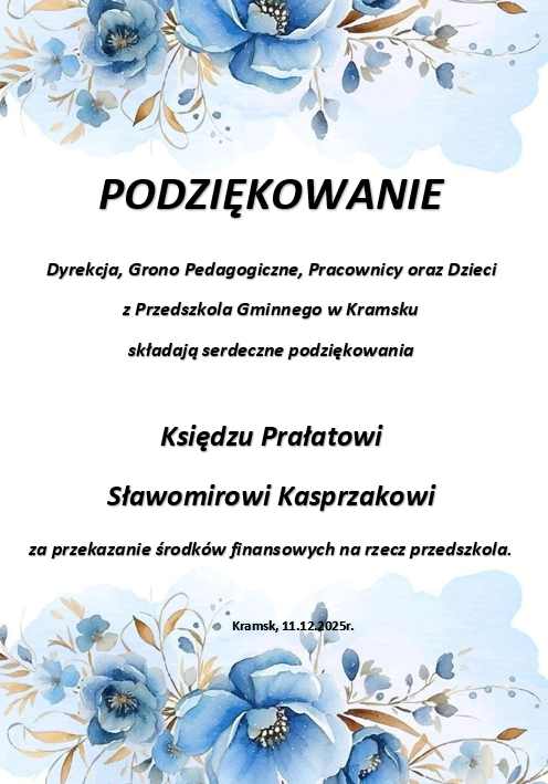 od lat wspiera przedszkole finansowo i materialnie przekazując prezenty na rzecz przedszkola oraz dla dzieci przy okazji różnych uroczystości