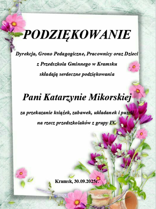 od wielu już lat wspierają materialnie nasze przedszkole przekazując różnorodne artykuły biurowe dla naszych milusińskich