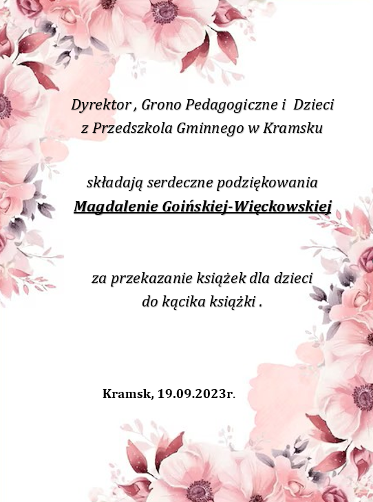 przekazała na rzecz przedszkola zestaw płyt z bajkami do naszej biblioteczki, oraz sadzonki kwiatów do ogrodu przedszkolnego.