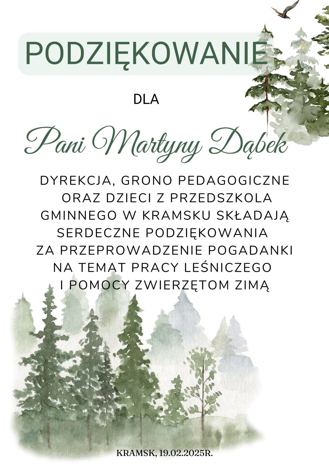 przekazał drzewka choinkowe na uroczystość bożonarodzeniową organizowaną w naszym przedszkolu