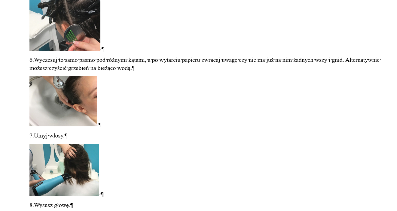 Działania poza głową Wbrew pozorom nie jest konieczne wielkie sprzątanie w domu. Wesz poza głową człowieka żyje maksymalnie 48h. Gnida poza głową człowieka nie ma realnych szans na wyklucie się. Trzeba: