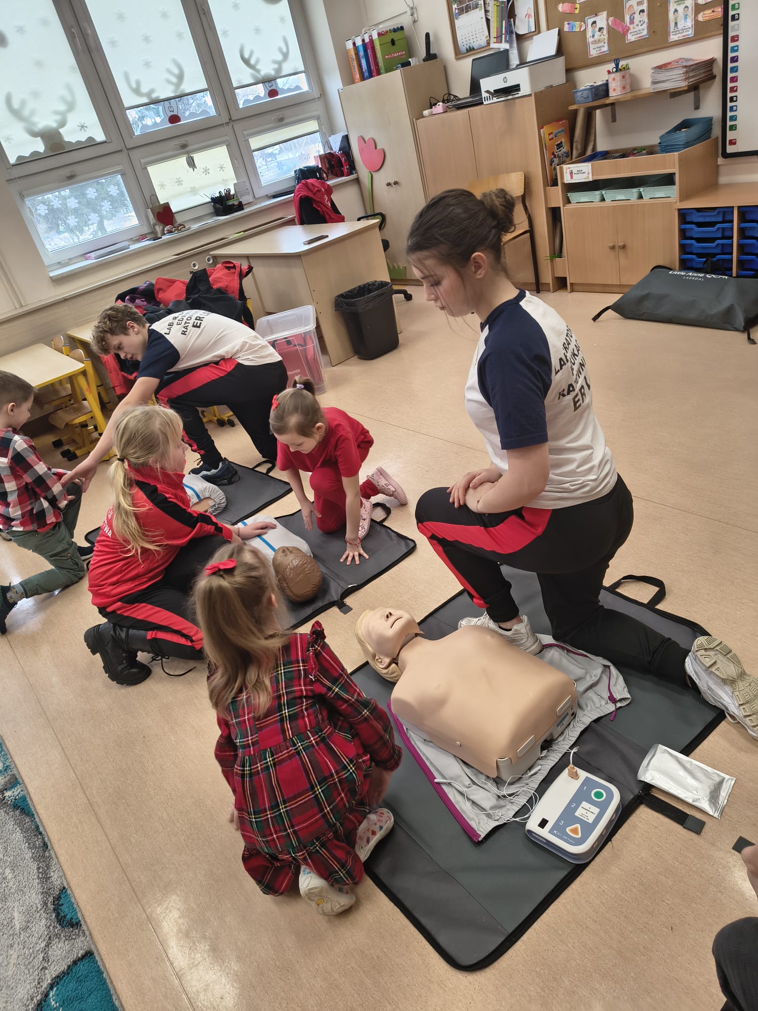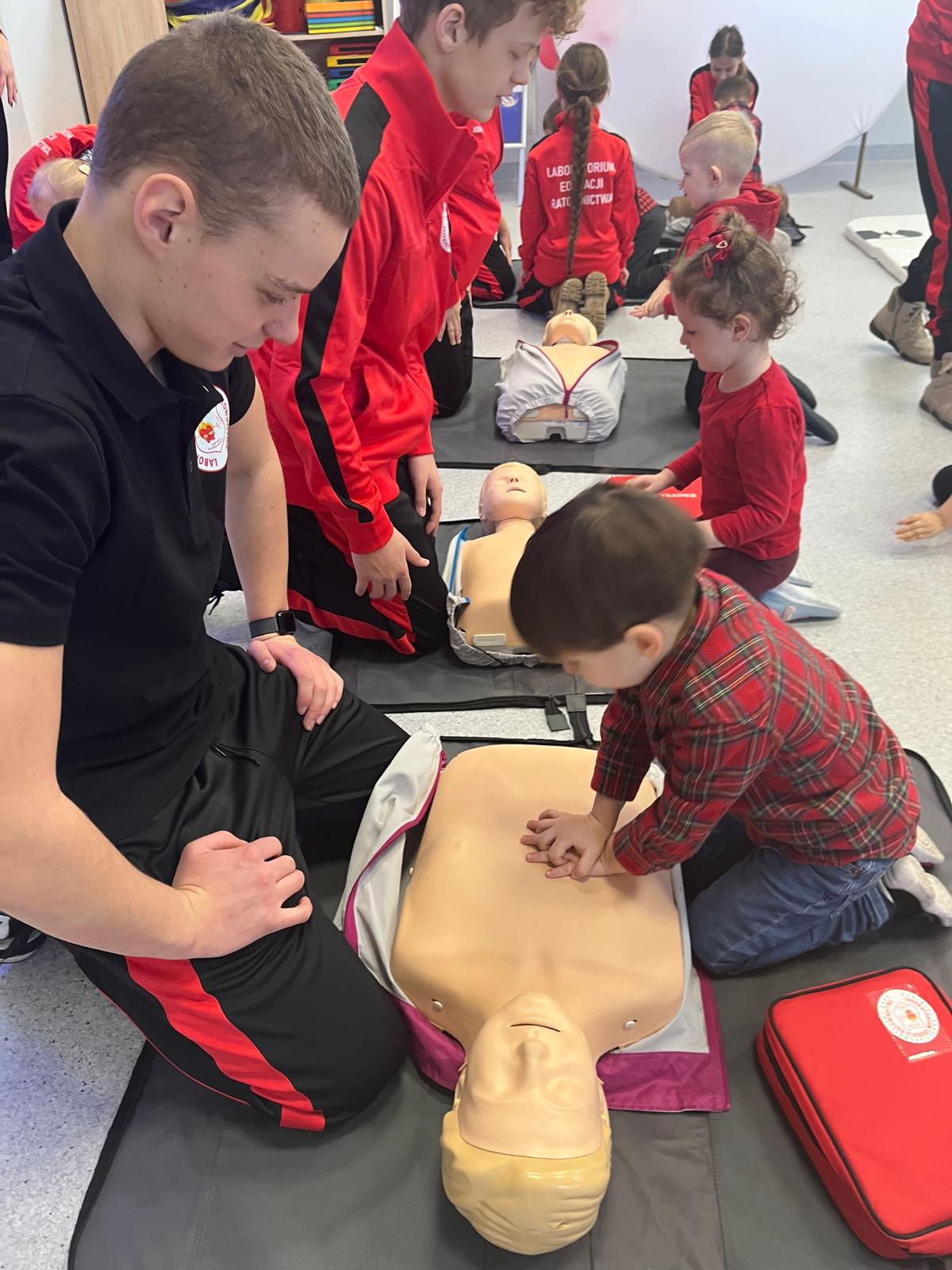 Warsztaty pierwszej pomocy to doskonały sposób, aby wyposażyć dzieci w niezbędne umiejętności ratowania życia, dostosowane do ich wieku i możliwości przy wykorzystaniu dostępnego sprzętu takiego jak fantomy do resuscytacji, defibrylatory AED, czy inne, które przywieźli ze sobą nasi goście i na których mogli ćwiczyć najmłodsi.