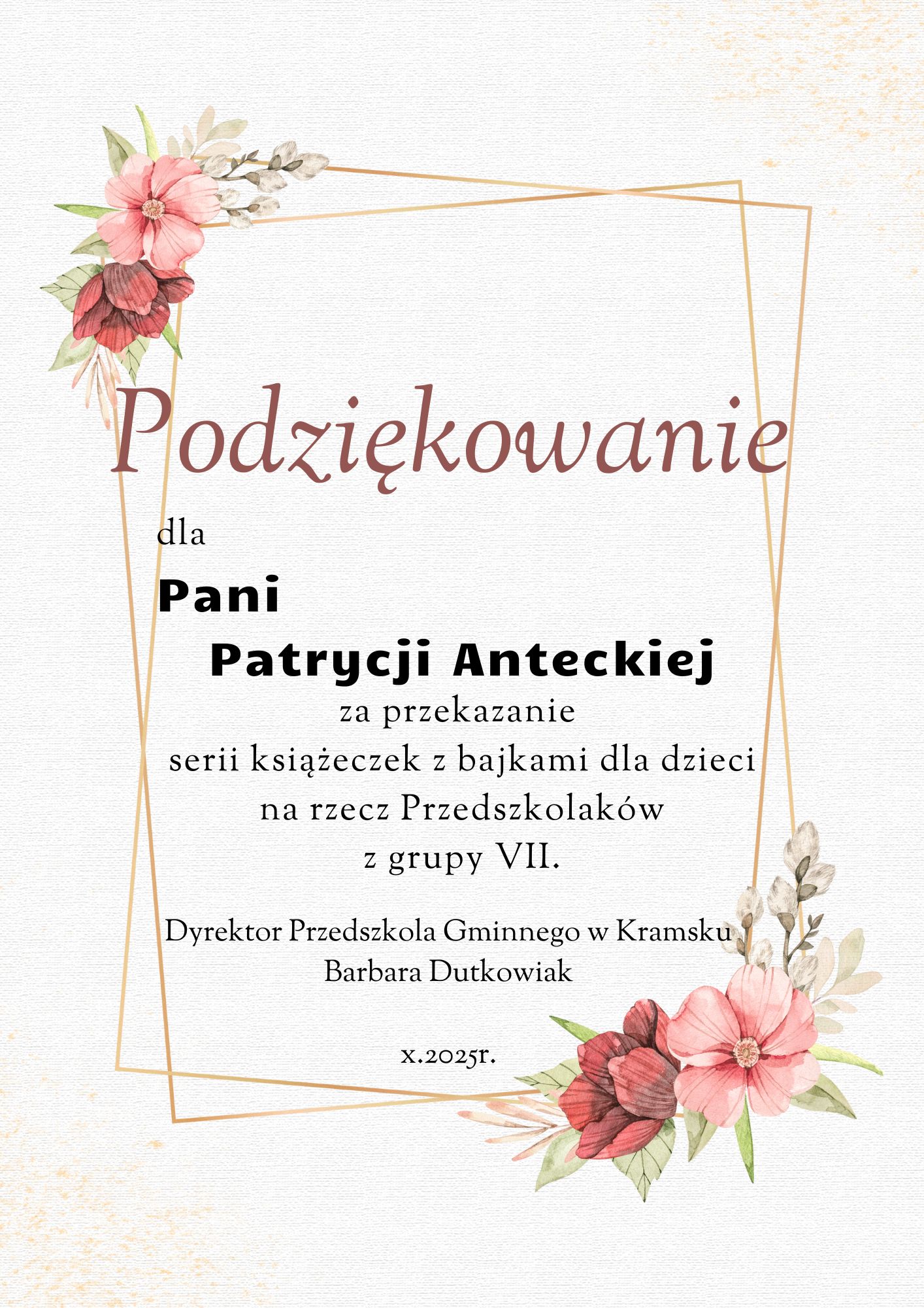 przekazała na rzecz przedszkola zestaw płyt z bajkami do naszej biblioteczki, oraz sadzonki kwiatów do ogrodu przedszkolnego.