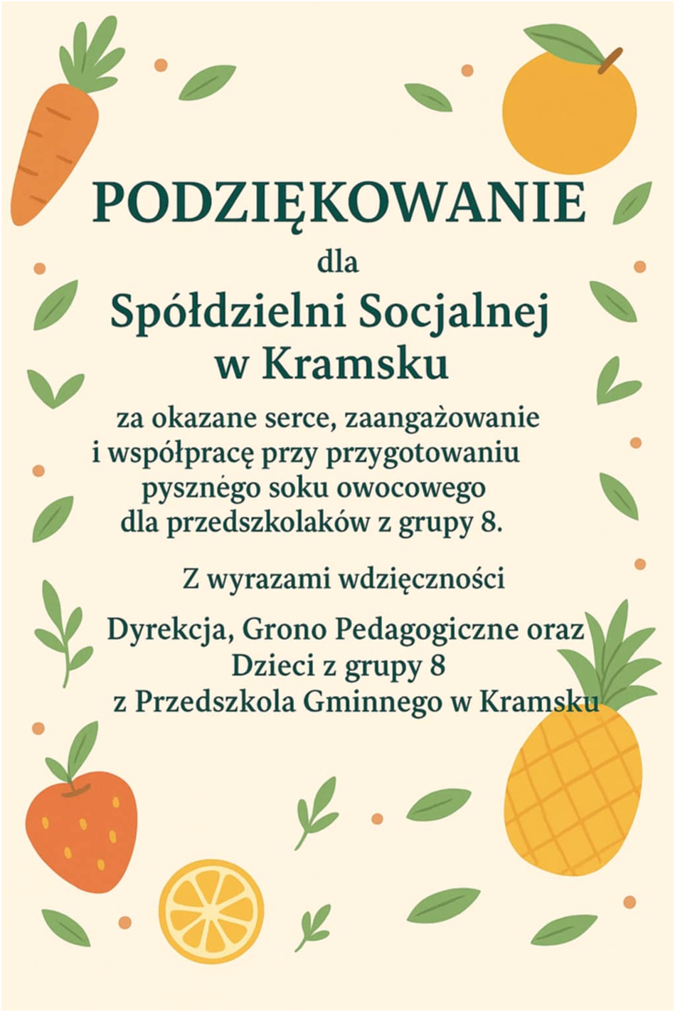 od wielu lat wspiera nas materialne podczas organizowania wszelkiego rodzaju imprez przedszkolnych